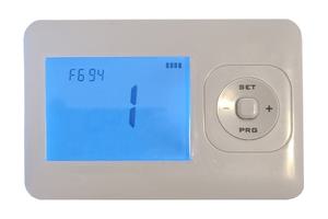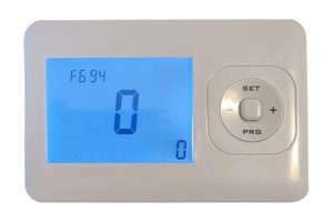 Mens kredsen på styringen blinker, skal du holde "SET"-knappen nede på termostaten, indtil skærmen lyser op og viser "0" i midten.