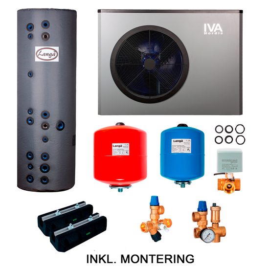 1 x IVA Nordic Varmepumpe med Wi-Fi - Luft til vand - 12 kW 1 x Montering af luft til vand varmepumpe 1 x Montageblok med skinne - 600mm - 2 stk. 1 x Isoleret Akkumuleringstank Comfort - 50+120 liter med sanitetsspiral 1 x Trykekspansionsbeholder 19 liter 1 x Trykekspansionsbeholder 12L - Til brugsvand 1 x Sikkerhedsarmatur - 8 bar 1 x Sikkerhedsaggregat 3/4" 1 x 3 vejs shunt ventil med motor 2 signalNår du trykker på "Køb" knappen, vil alle disse varer blive lagt i kurven. Herefter kan du selv gå ind i kurven og tilføje/fjerne produkter fra pakken, efter behov.