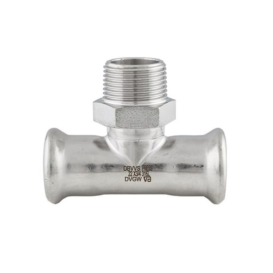 Rustfri Press - T-stykke - 1/2" udvendigt gevind