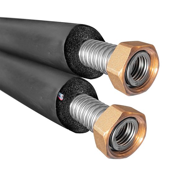 Flex-rør i rustfrit stål, med dobbelt isolering. Rørene har 2 ledninger beskyttet af silikone, som kan bruges til at forbinde styringen med temperaturføleren på taget.