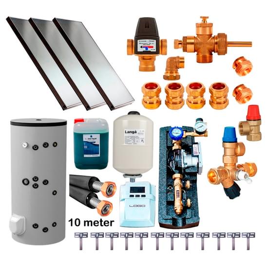 3 x Solvarmepanel - Classic R - 2 m2 1 x Solvarmebeholder 300 L - Fritstående med 2 spiraler 1 x Pumpestation - 1 rør - Uden styring 1 x Styring til pumpestation - LOGO PWM 1 x Rustfrie flex-rør - 10 meter - 3/4" omløber 2 x Kompressions Slutmuffe 3/4" ø22 1 x Trykekspansionsbeholder 8 liter - til solvarme 1 x Solfangervæske - 10 liter 1 x Sikkerhedsventil - 10 bar - 3/4" 1 x Skoldningssikring 1 x Manuel udlufter med dykrør 1 x Kompressions vinkel til kobber/pex m/nippel - 22 x 3/4" 4 x Tilkobling fra og til solpanel - 1 stk 3 x Ophæng til solpanel - 4 beslagNår du trykker på "Køb" knappen, vil alle disse varer blive lagt i kurven. Herefter kan du selv gå ind i kurven og tilføje/fjerne produkter fra pakken, efter behov.